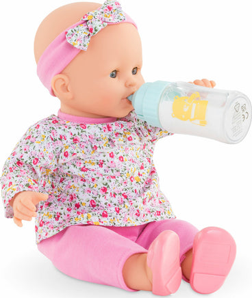 Ideal feeding accessory for a 14-inch Corolle mon grand poupon baby doll. The Milk Bottle with sounds has 3 sounds to inspire creative play scenarios. Uses 2 x 1.5V LR44 batteries. Demonstration batteries and two replacement batteries included. Ages 3 and up.