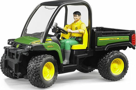 The John Deere Gator 855D is a true multi-talent. For agricultural work, as a support vehicle for forestry, for municipal work or on construction sites ? the Gator makes a great companion. This especially successful combination of efficient utility vehicle and a diminutive size make the Gator an extremely versatile and useful vehicle. The fully functional BRUDER driver figure also enhances the play environment of our little customers. As a result, role play, in particular, is stimulated and the imagination knows no bounds.