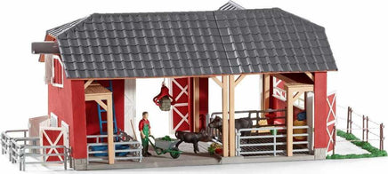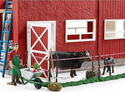 Explore the farm with the Large Red Barn with Animals and Accessories, a fun, educational toy playset from Schleich! This 22.047" x 14.76" x 6.299" set is authentically detailed, and is ideal for hours of imaginative play. Detachable roof, moving barn doors, movable farmer, and functioning winch! 27 pieces.