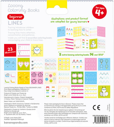 Get your crayons ready – it's time for tracing lines! This creative set contains 2 long (37.5"!) accordion books with 23 illustrations and exercises, which will encourage children to pick up their crayons and practice precise hand movements.