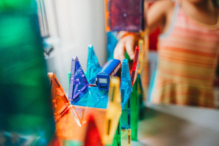 Translucent, colorful 3D shapes include large and small squares and three kinds of triangles that offer limitless open play and learning. Magnetic edges make them so easy to use, and they're compatible with all other sets, so let the building continue.