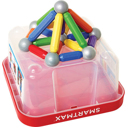 SmartMax Build XXL features 70 building pieces and a container that is a sturdy storage unit - and much more! Both the lid and the bottom of the container each offer a unique building grids to help you on your way to building original and colorful structures. Colorful building guides are also included. SmartMax enables young children to explore magnetism safely, with strong, oversized pieces that are specifically designed for handling by young kids. SmartMax products are safe and durable, made from the highest quality materials. Our magnets are incredibly strong, able to carry up to 60 times their own weight! All parts can be combined with all existing SMARTMAX sets, creating an endless range of possibilities!