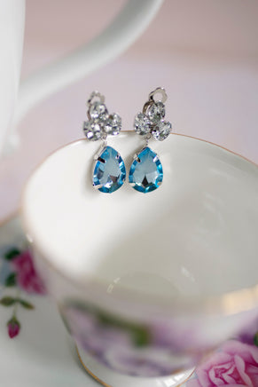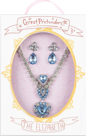 Classic glamour gets a modern twist with The Marilyn 4 Piece set. This bold and beautiful boxed-set includes blue & silver clip-on earrings, a heart-shaped ring, and a coordinating necklace jam-packed with jewels.
