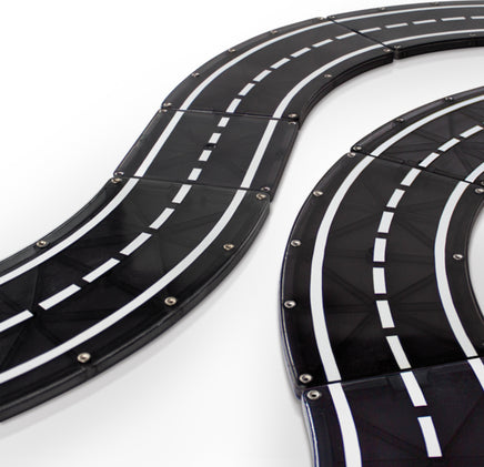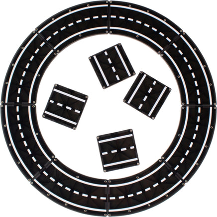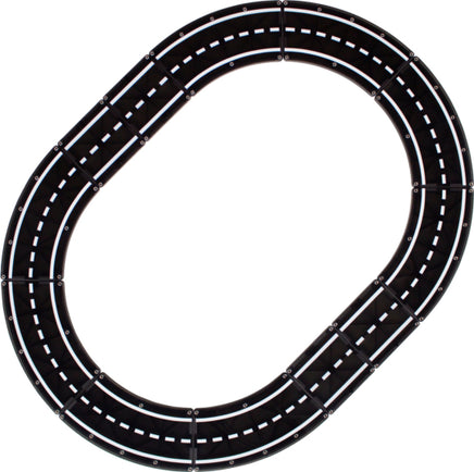- Includes all the pieces you need to complete a perfect circle (8 Curves) or an oval racetrack (8 Curves + 4 Squares).