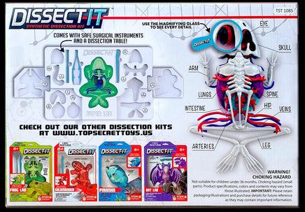 Eeew, it's a frog! Take the gross out of these slimy creatures and reinforce STEM skills with a realistic experience of dissection without the use of a real animal! Curious kids and future biologists follow the instructions and use the safe plastic tools to cut open the wiggly, jiggly gel frog. They'll learn about anatomy as they remove a complete plastic skeletal structure and a full set of organs. Includes a dissection table, 4 plastic tools (scalpel, tweezers, probe, magnifying glass), and 2 refill gel kits for reuse. The instruction manual also includes facts about these fascinating amphibians and a quiz.