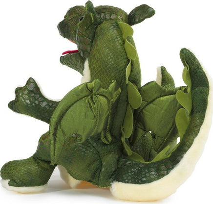 Sitting on his rump, tail curled and reaching for MOM, he may look harmless, but watch out! This BABY DRAGON puppet is a fierce creature in training. Animate his arms and mouth and he'll light fires in your heart. Fashioned in scaly textured fabric with satiny wings, the Baby Dragon puppet measures 12 - inches tall.