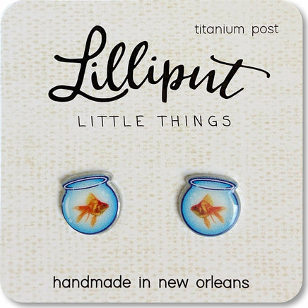 These quirky fishbowl earrings are just for fun! Featuring a cute tiny goldfish in bowl.