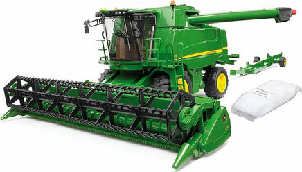John Deere, the world's leading tractor manufacturer, also makes combine harvesters. The T series of these harvesters underwent new development and now includes as its top model in terms of performance and equipment the model T 670i. The same holds true for its entirely new BRUDER model which represents a milestone in the history of toys that meet the most challenging requirements. While the highly efficient technology incorporated into these impressive machines, for the most part, operates unseen by the casual observer, children are always fascinated with the spectacle created by combine harvesters when harvesting crops. With our new John Deere combine harvester BRUDER has managed to make this technology come to life and turn it into a tangible experience. Our little farmers will be thrilled to learn how easy this big harvester steers and how exciting it is to be able to drain the grain tank via the drain tube. Its other realistic details including the opening cabin door, numerous opening covers, a detachable cutting unit with pendulum suspension and level compensation ? to name only a few ? are sure to make this toy enormously fun to use.