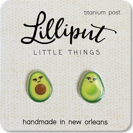 Adorable Kawaii avocado earrings featuring a pit on one side and adorable smiley faces on each!