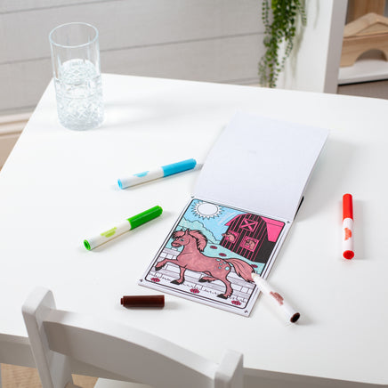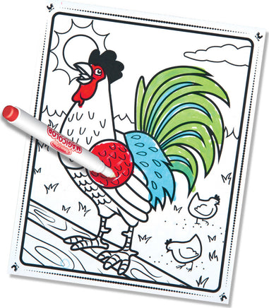 Our amazing Magicolor technology lets children pick a marker, fill a scene, and see colors magically appear on the page--all completely mess-free! The four included markers have ink that’s invisible anywhere else but creates instant color on the 18 pages of scenes featuring cows, horses, chickens, cats, dogs, pigs, sheep, and even a cheerful scarecrow. As a bonus, the spiral-bound book’s all-inclusive format comes with handy storage for the markers, making it great for travel!