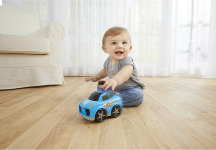 The Kidoozie Press 'n Zoom Police Car features lots of little enticing details. The wheels spin and the spoiler jumps as it rolls. Plus it comes has cool police decals on the side with safe rounded edges and a little peek-a-boo officer. You want to give your child good role models from the start like doctors, firefighters, and police officers. Now with the Press 'n Zoom Police Car, they have a little hero of their own to help. They'll have hours of fun getting their pal to the scene of the emergency. The Press 'n Zoom vehicles from Kidoozie move without any power source. All you have to do is press the hero's head and watch the vehicle race across the floor. No batteries required! It's the perfect toy that never stops rolling. Kidoozie toys are engaging, educational and FUN. Our broad range of high-quality toys have won numerous awards and are safe and well designed. Innovative toys encourage movement, problem-solving and pretend play through various themes. Stimulate the imagination and enable learning through play.: Package contains (1) Kidoozie Press 'n Zoom Police Car with press and go action. Features moving spoiler, peek-a-boo head, and spinning wheels. No batteries required. Recommended for children ages 12 months and older.