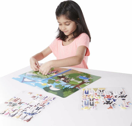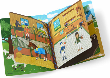 This 10-page puffy sticker activity book lets kids jump right into an equestrian world! With 139 reusable stickers and different scenes on each page, this spiral-bound play set invites kids to dress the riders, saddle the horses, and move the characters from page to page to visit a pasture, stable, horse show, and more.