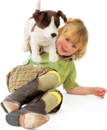 "Best in Show" describes this perky JACK RUSSELL TERRIER puppet, a realistic "smooth coat" rendition of the American Kennel Club breed that just may fool the judges! Featuring a chest opening and movable mouth, this spunky little pup shivers with eagerness with just a slight motion of your arm.