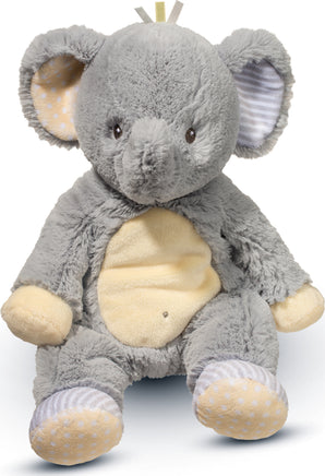 Wrinkles and rolls of luxuriously soft fabrics make our Sweet Little Gray Elephant Plumpie positively irresistible! We've paired cuddly gray plush fur with pastel toned polka dots and stripes to create a sophisticated soft friend for Baby. This little elephant features decorative ribbon accents atop his head to engage Baby's senses. Soft embroidered eyes ensure this soft toy is safe for infants. The understuffed body of this playful pachyderm gives him the endearing slouch our ultra huggable Plumpie stuffed animals are known for. So come and give him a squeeze; we're sure you'll love him and Baby will too! Like all of Douglas's Cuddle Baby products, our Sweet Little Gray Elephant collection features an assortment of other accessories featuring this character so he can be enjoyed on his own or matched with coordinating Elephant toys!