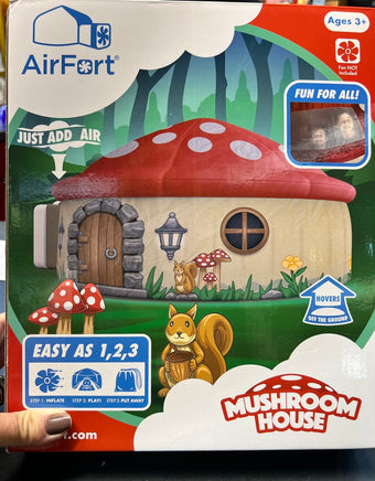 Enter a whimsical wonderland with a Mushroom House AirFort! It's easy to set up, packs away quickly into its storage bag, and is durable enough to last for years of play. Simply attach the fort to a floor fan and watch it magically inflate in less than 30 seconds. At 77" wide and 50" tall, this fantasy forest house is big enough to fit both kids and adults for playdates, movie nights, storytime, or even slumber parties!