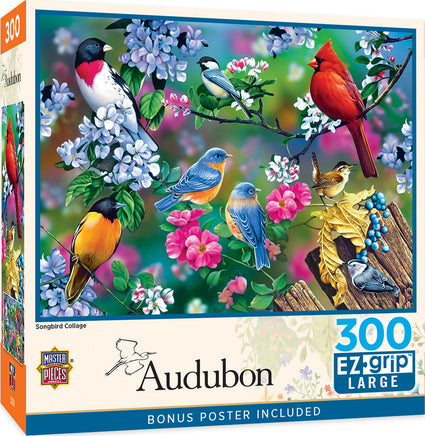 This MasterPieces 18" x 24" 300EZ Grip Audubon Puzzle is full of colorful beautiful songbirds of North America and sponsored by the National Audubon Society. To reduce its impact on our environment, the chipboard used in this puzzle is made of recycled material.