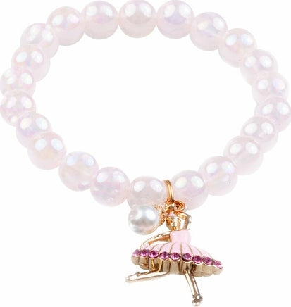 Every ballerina's dream bracelet. This beaded pearl bracelet features a ballerina pendant with a row of pink gems on her dress. A pearl bobble is added detail for this easy stretch elastic stretch bracelet.