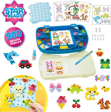 Aquabeads Beginners Carry Case is the ideal introductory fuse bead set, allowing for independent play by children that doesn't require needles or ironing! This complete craft kit includes everything your child needs to create unique bead designs, from cute animals to colorful rainbows and candy confections. Set features over 900 solid, jewel and star beads in a variety of vibrant colors, innovative flip tray, sprayer, double-sided bead pen, creation base with design pegs and bead palette that doubles as a storage case with carry handle. To start crafting, select your template and place the sheet underneath the flip tray, aligning the beads to the spacing on the tray. Follow the template to place the beads on the tray until the template is covered. Spray with water to fuse the beads together and finish your design! Fill the sprayer with water and spray the design thoroughly. Immediately after spraying, flip the tray to transfer the design to the receiver for drying. Continue to create more bead designs quicker with the flip tray set! Once you've created all the bead designs, upgrade to the Deluxe Carry Case, featuring 1,400 beads, wearable bases, and a larger storage case! Keep expanding your Aquabeads collection with theme refills and bead refills. Visit Aquabeadsart.com for more templates, including fun themes & seasonal designs.