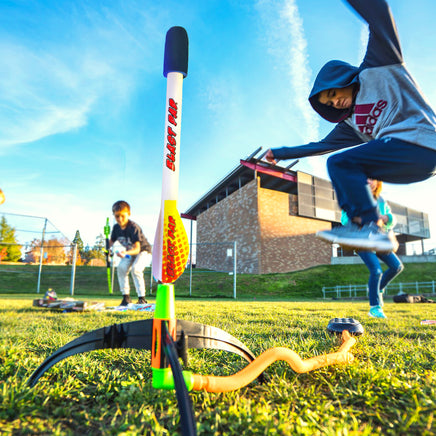High energy kids will have a blast (pun intended) stomping on this pad and launching foam-tipped rockets into the sky. It's a great way for them to get exercise and improve their mood as they watch these durable, aerodynamic rockets reach heights up to 200 feet. An automatic hit for birthday parties, BBQ's, or beach buddies, this launcher supports STEM learning as kids experiment with force.