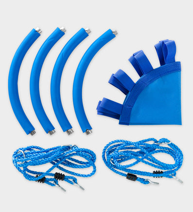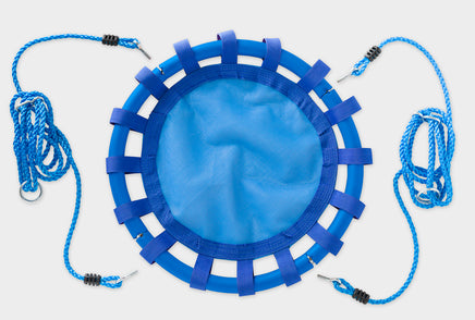 Kids are sure to have a swingin' good time on this bright blue 24" tree swing! Energetic swinging makes for fresh air fun, laughter, and hours of imaginative play. Safe and comfortable rides are guaranteed with its light and sturdy foam-coated metal frame, thick webbing, and durable mesh mat (that also allows moisture to drain). With a weight limit of 250 pounds, even adults can get in on the action. Easy adult installation and supervision required. Durable nylon ropes adjust from 40"-70" long; hanging hardware sold separately.