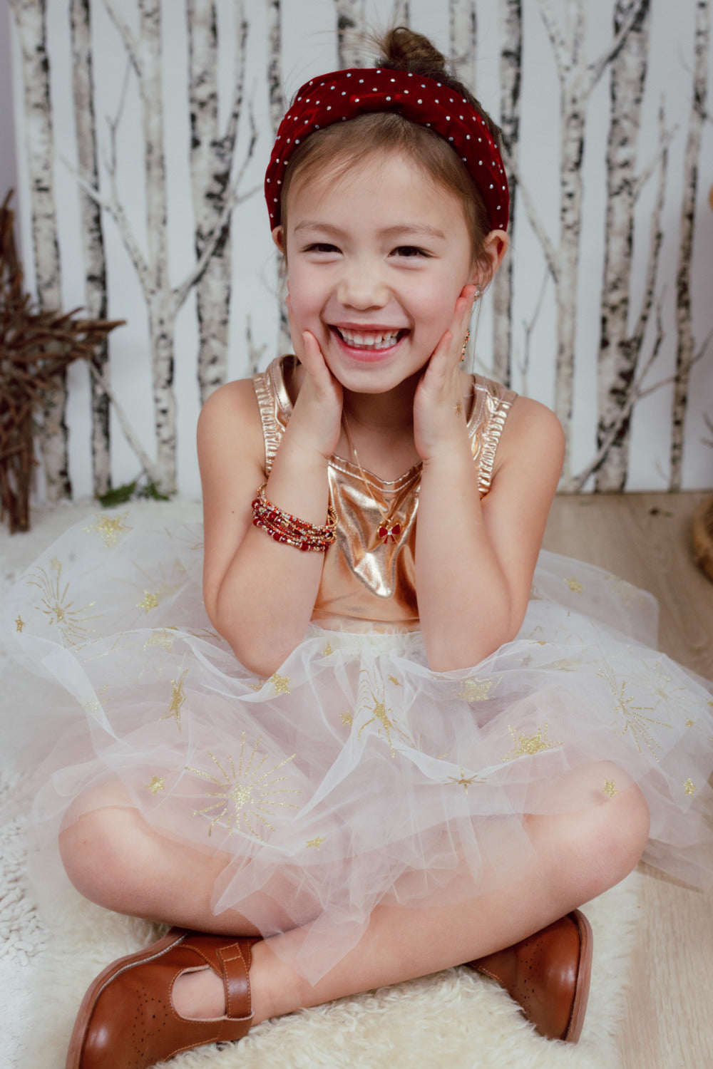 Enhance your fashion sense with Great Pretenders' Boutique Ruby Red Bracelet Set, which includes three exquisite red and gold bracelets. The first bracelet in the set is meticulously made with top-notch gold & ruby-red beads.