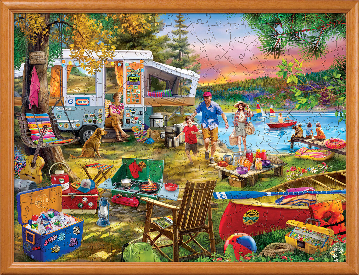 Step into a serene lakeside escape where a family, bathed in the golden hues of sunset, revels in games, laughter, and togetherness. For those who yearn for the outdoors, the bliss of family time, or the tranquility of a lakeside view, this puzzle captures it all. A gift that promises hours of joy and a journey back to nature's embrace. Designed for hands of all ages, this 300pc puzzle with larger, easy-to-grasp pieces ensures a delightful assembling experience. It's perfect for those cherished family nights where memories are built together.