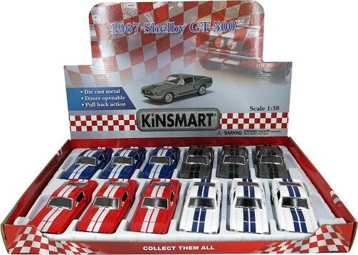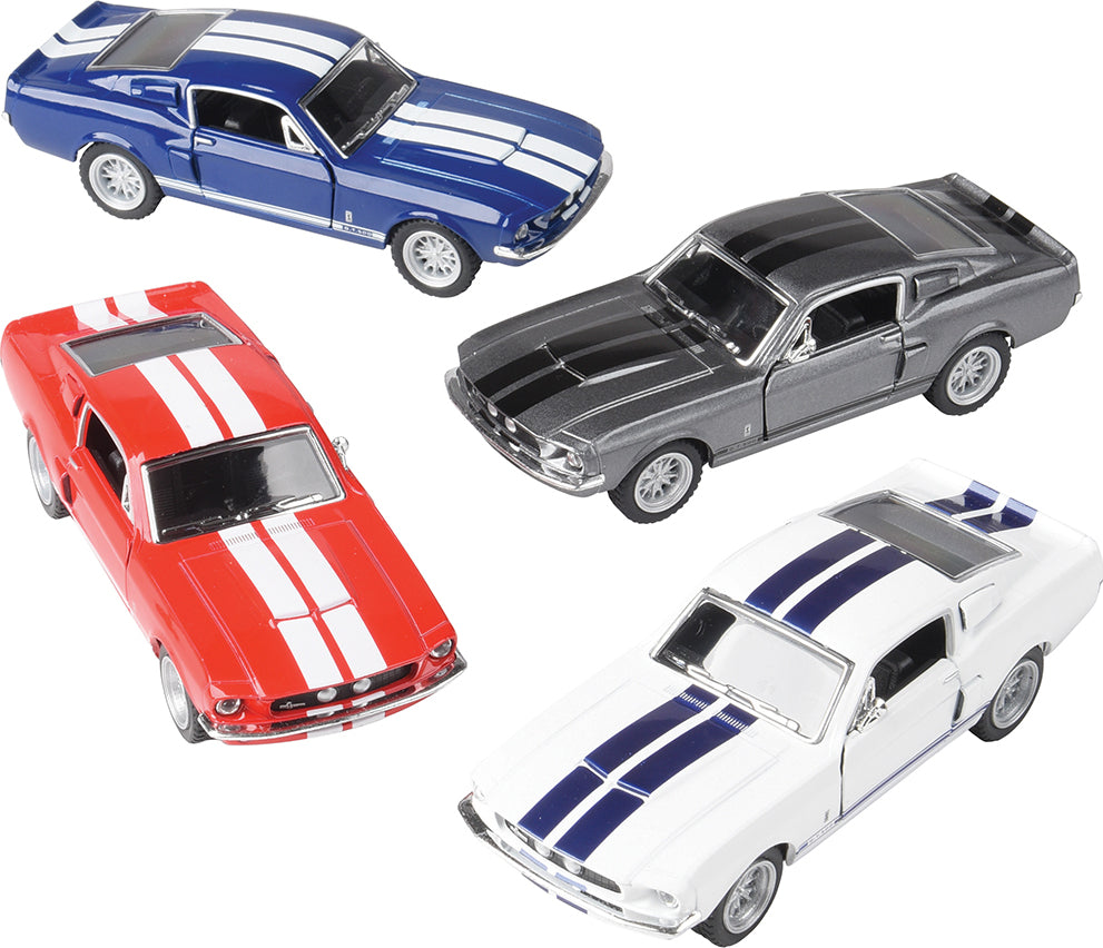 12 per box Collectible classic muscle car for hobbyists Pull back motor action and opening doors Made of metal and plastic Item 5" L., 1:36 Scale replica Display with Assorted styles Age 3+