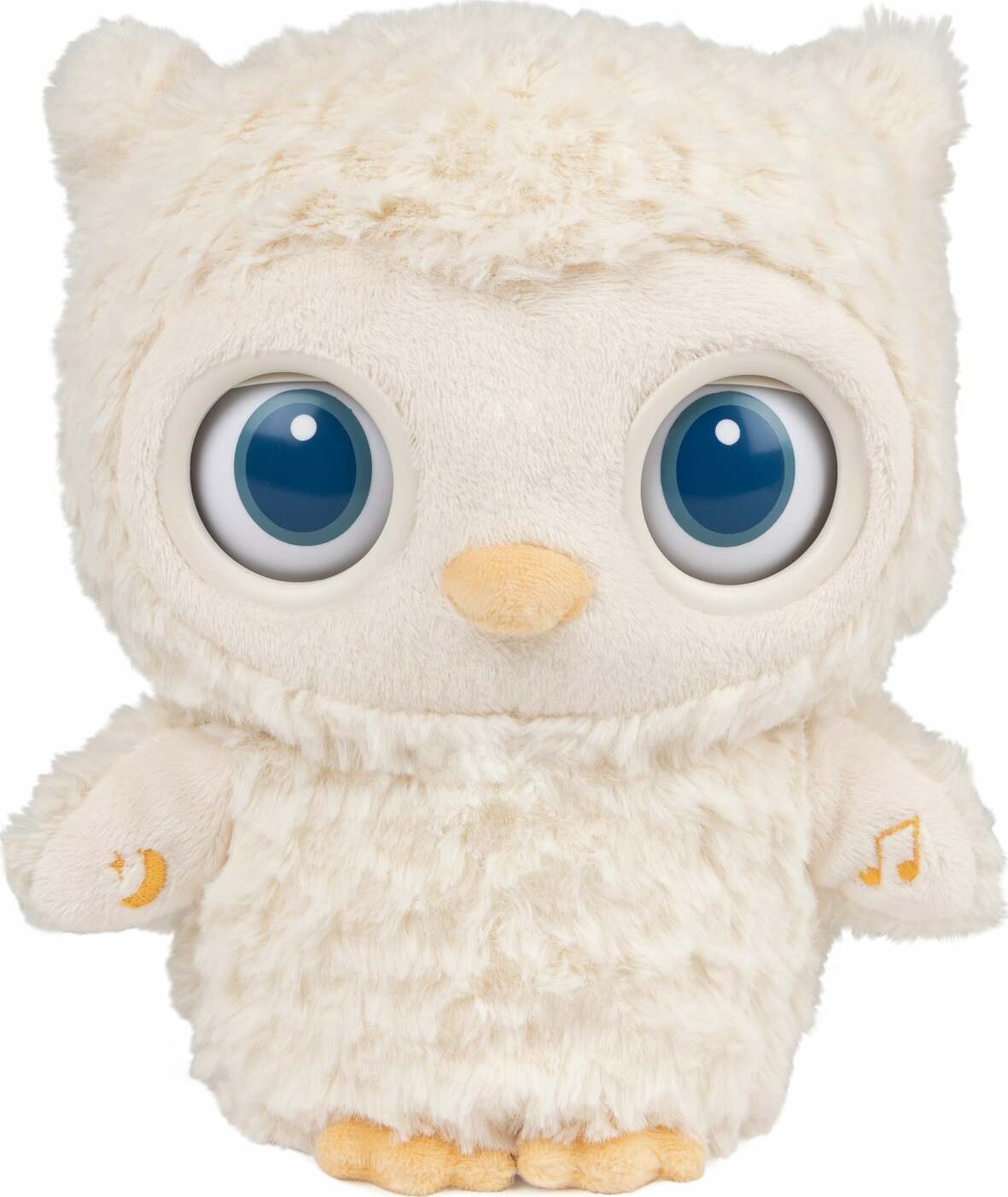 • For Nighttime Soother Mode, press the embroidered moon on the left wing to start the cycle of seven soothing sounds as the sleepy owl eyes slowly close, inviting baby to do the same.