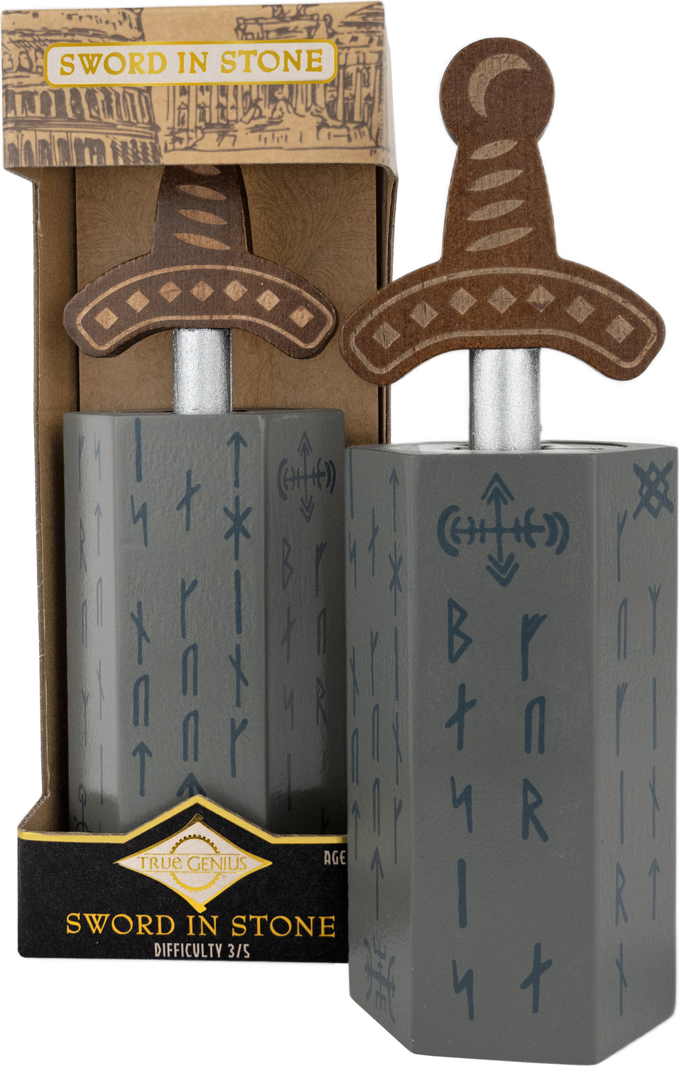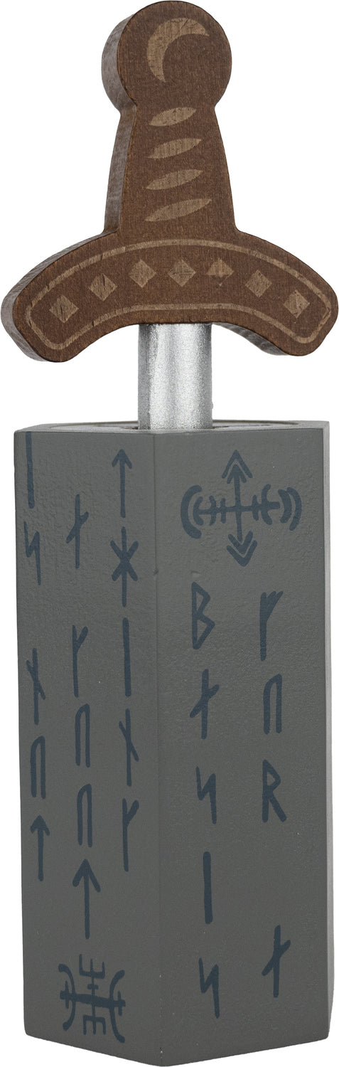 Turn and twist the hilt of the sword through the opening of the stone until it is completely free, then return it all the way back to the hilt again.