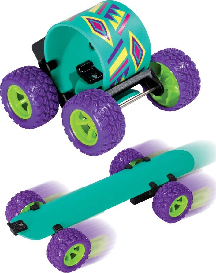 The Wrap N’ Roll Skateboard Bracelet from Toysmith is a unique snap bracelet that transforms into a car or skateboard with pull-back action. Bracelets are solid-colored on one side with a geometric pattern of multiple colors on the other side. Colors of bracelets and wheels vary but may include neon pink, neon green, neon orange, purple, turquoise, yellow, and bright blue. Roll it up and move it like a car or slap it flat to create a skateboard. Get an assortment of 12 with a 14.57 x 10.83-inch display box that’s solid black and illustrated with multicolored geometric shapes.